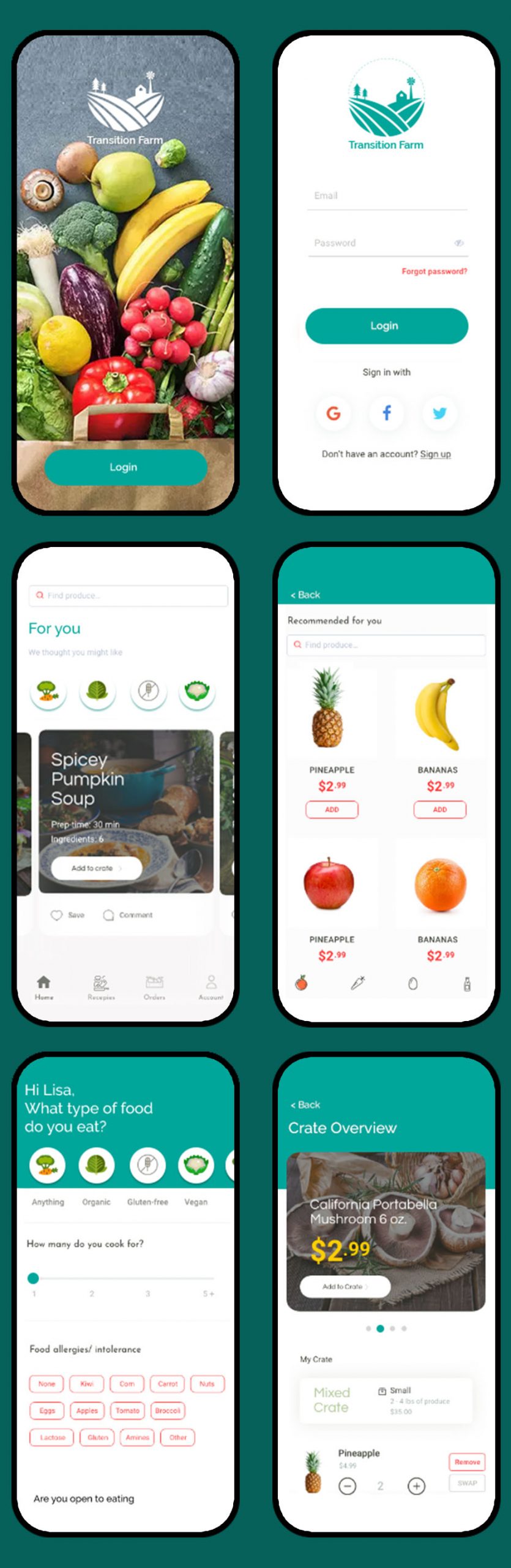 To design and develop the Transition-Farm app, connecting users with local farms selling fresh produce and providing recipe ideas. The goal was to promote healthy eating and support local agriculture through an easy-to-use platform.